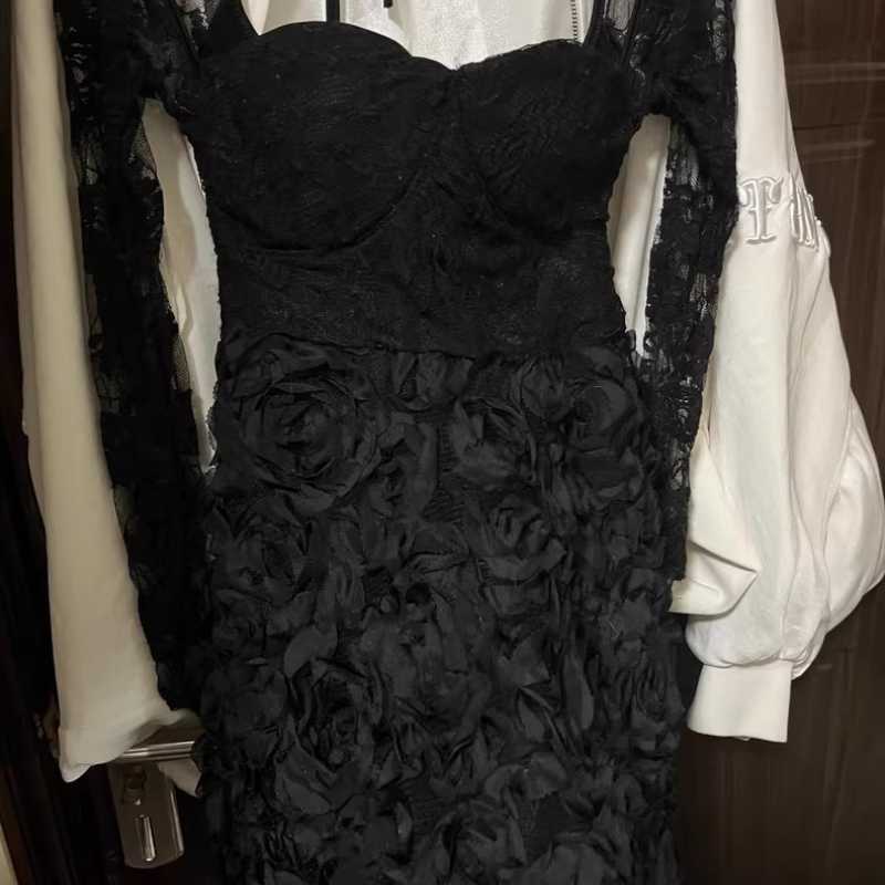 Black lace evening dress