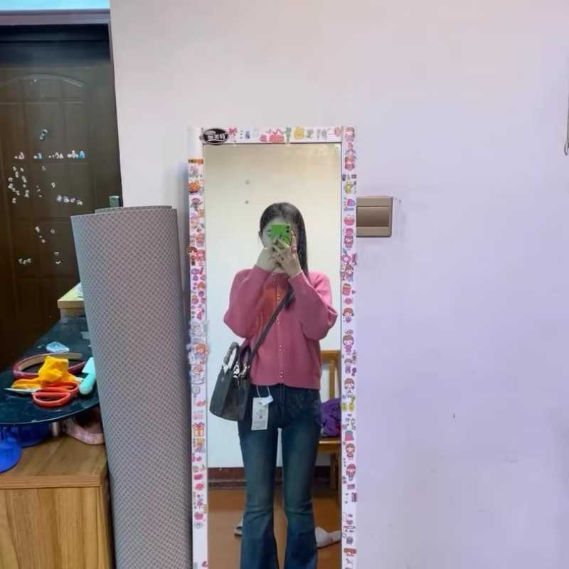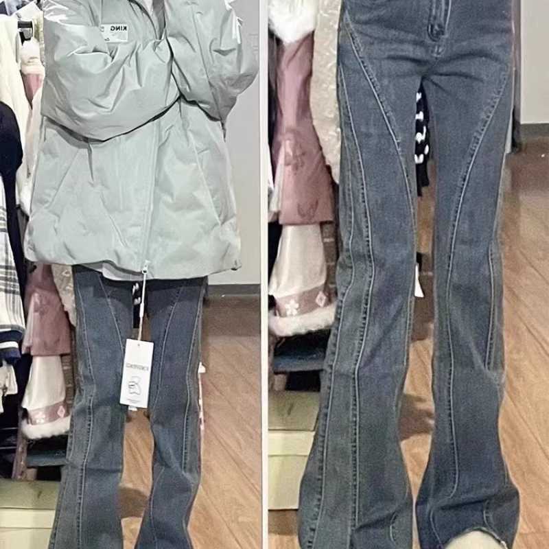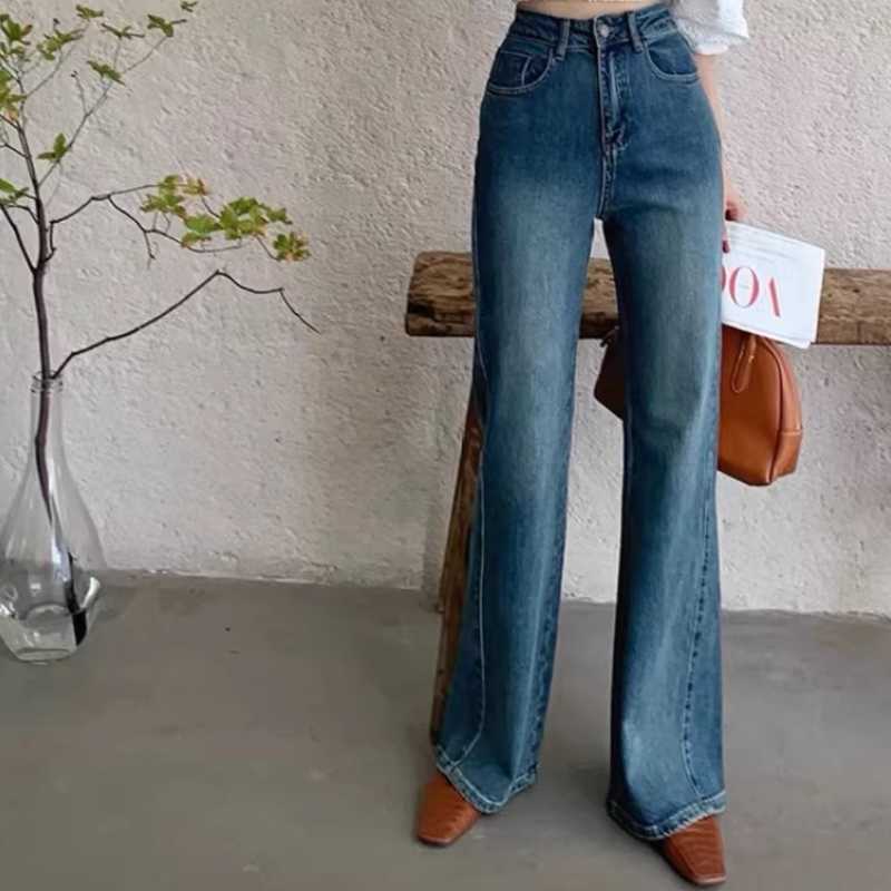 The large-sized jeans with a slightly flared edge and a sense of design make you look slimmer