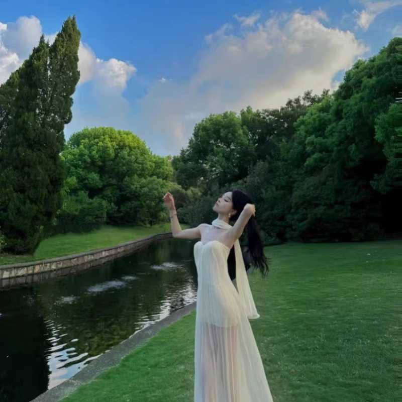 A treasure dress with a light mature style and a high-end feel with puffed sleeves and texture