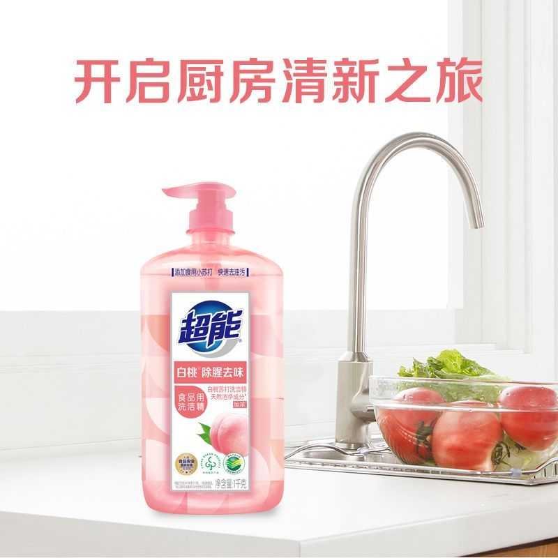 超能洗洁精白桃1kg家庭装家用食品级洗涤灵洗碗果蔬奶瓶官方正品