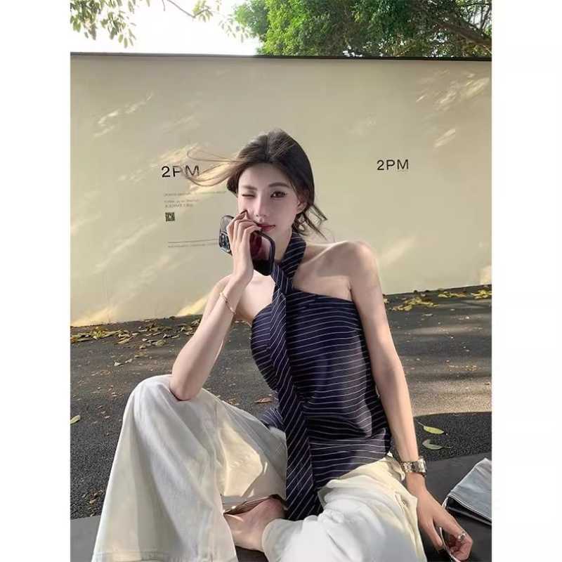 Blue striped halter top