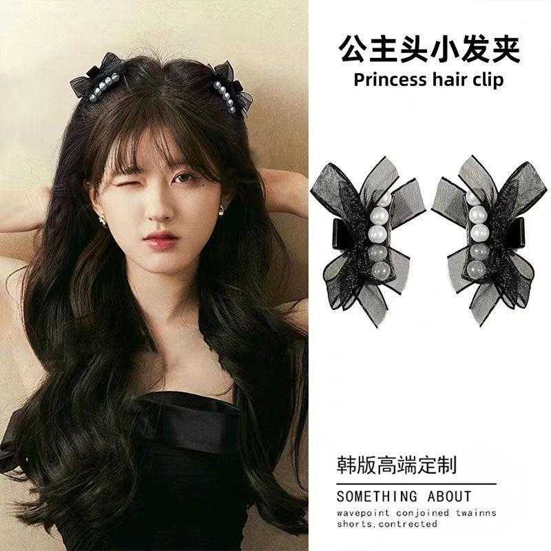 公主网纱夹子黑色双面蝴蝶结小抓夹前额刘海碎发头饰ins发饰发夹