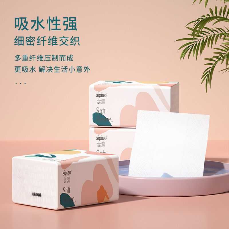 【加量400张】丝飘4包抽纸家用餐巾纸卫生纸批发面巾纸宿舍擦手纸