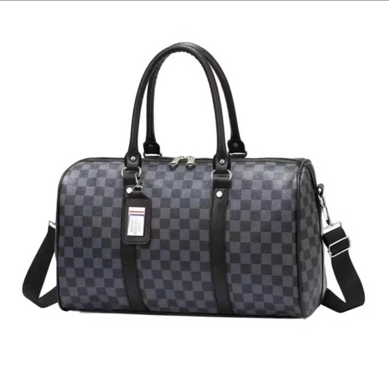 Men's fashion classic checkered fitness bag, single-shoulder travel bag, casual