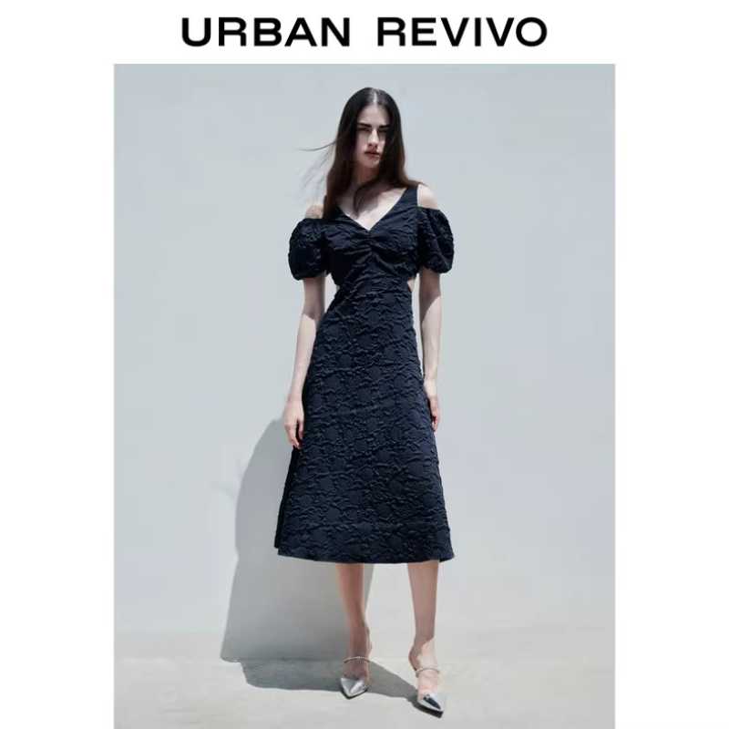 A treasure dress with a light mature style and a high-end feel with puffed sleeves and texture