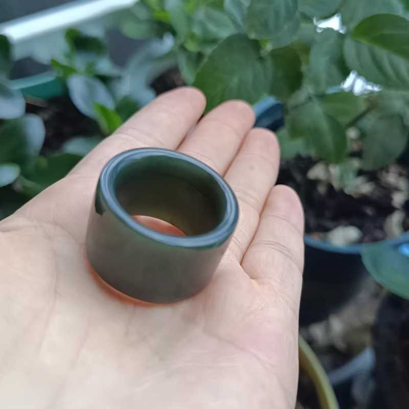 Natural Hetian jade green jade finger ring