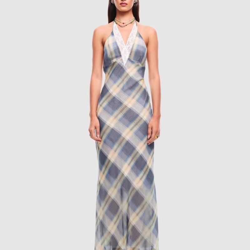 SIMKHAI satin lace patchwork halter dress xs size genuine