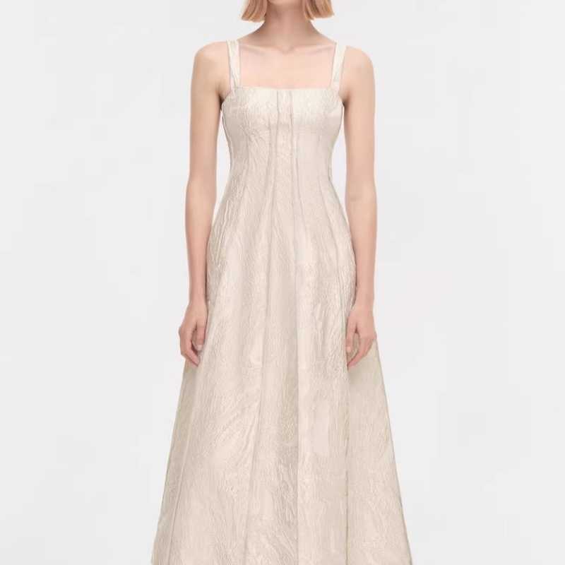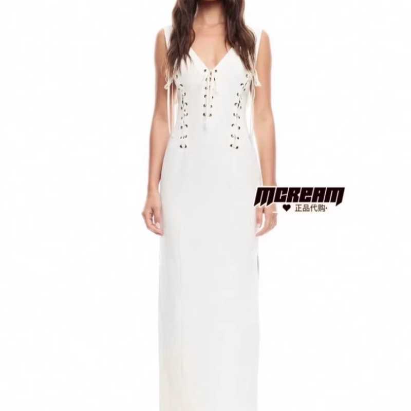 Lioness white sexy hot girl V-neck perforated lace-up sleeveless long slit dress