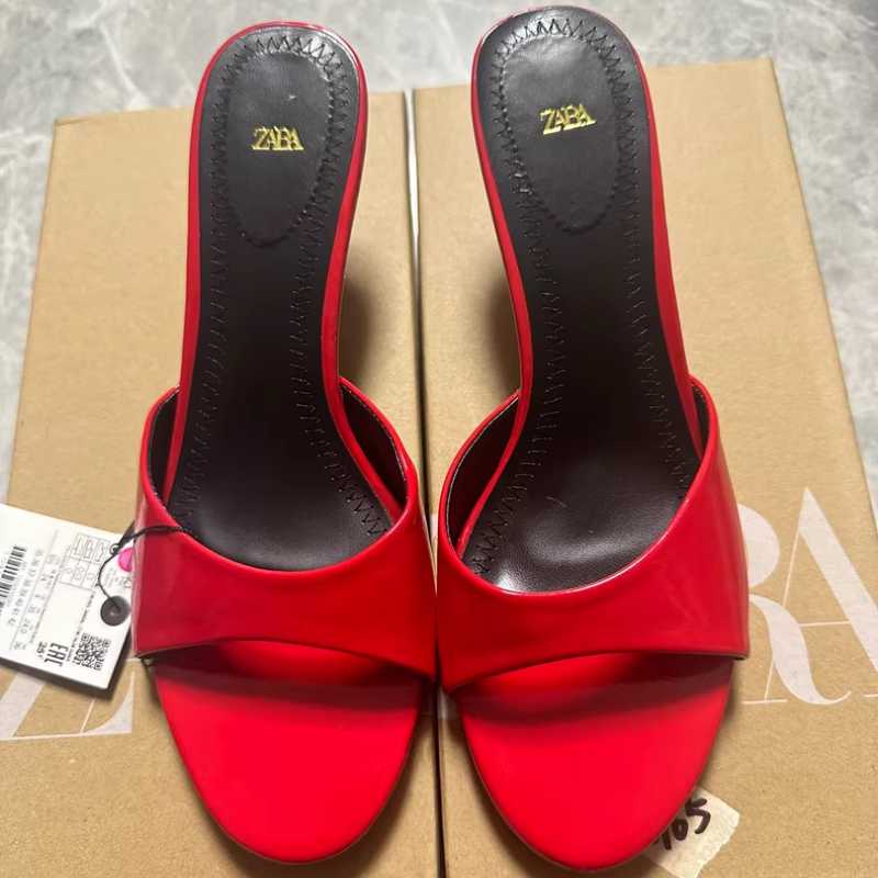 ZARA red patent leather stiletto Muller sandals 35-42