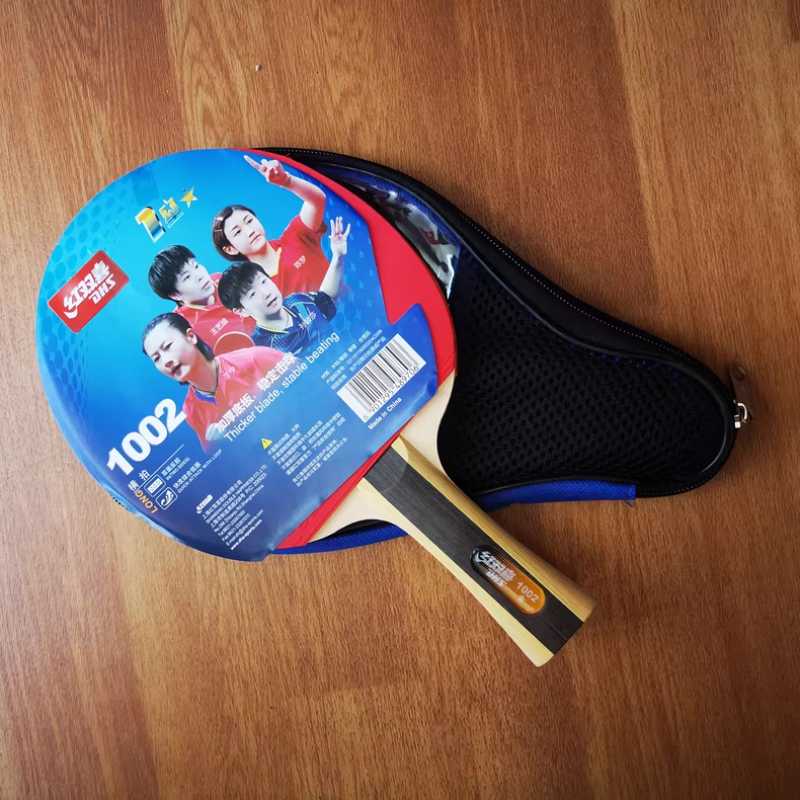 A single finished Red Double Happiness 1002 table tennis racket