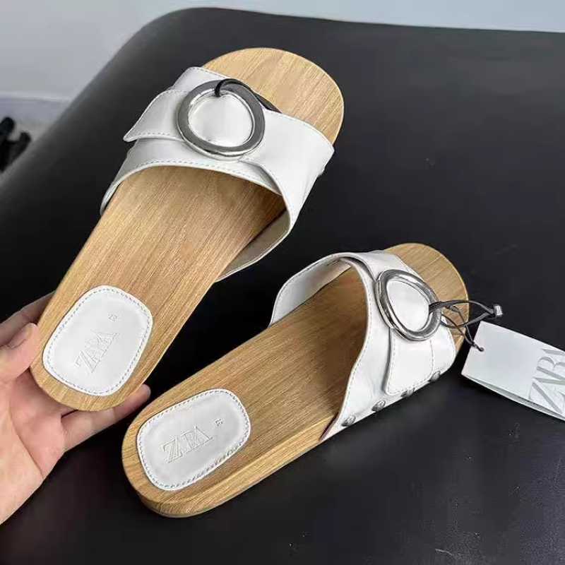 Zara, classic white sandals and slippers with fashionable metal rings