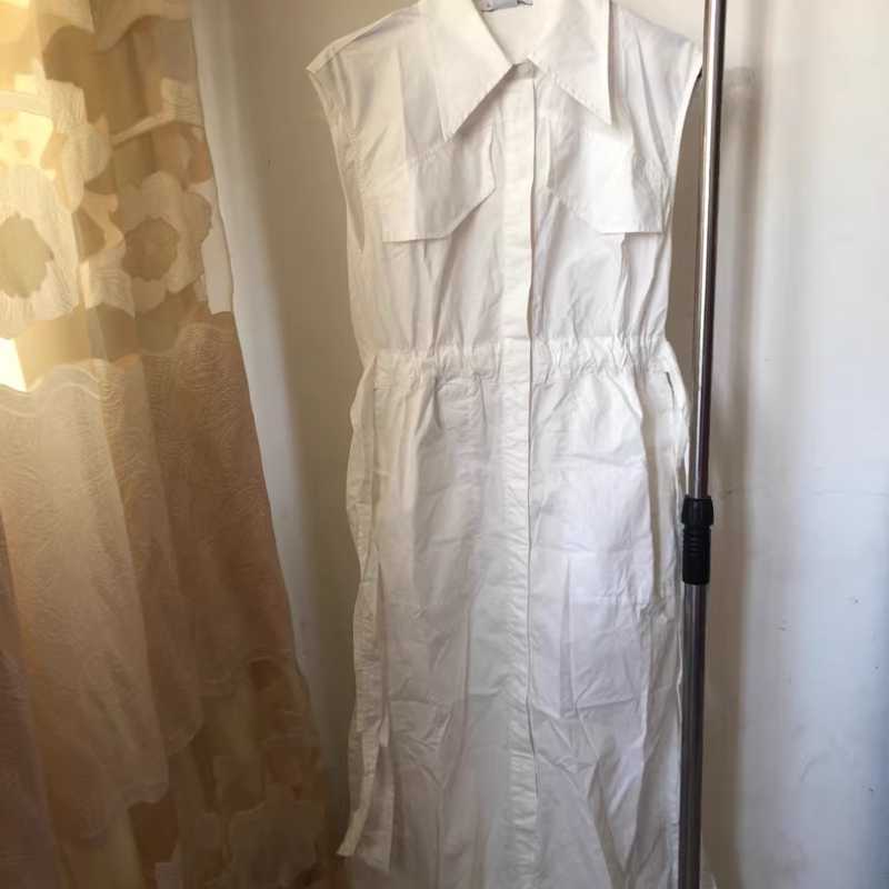 UR white shirt dress with a waist-exposed, sleeveless and slit