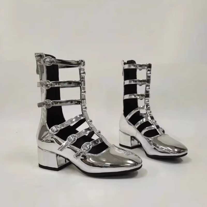 Silver children's catwalk hollow ankle boots, size 28