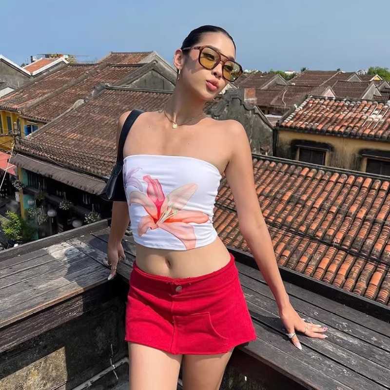 Sancokis European and American style oil painting printed tight strapless