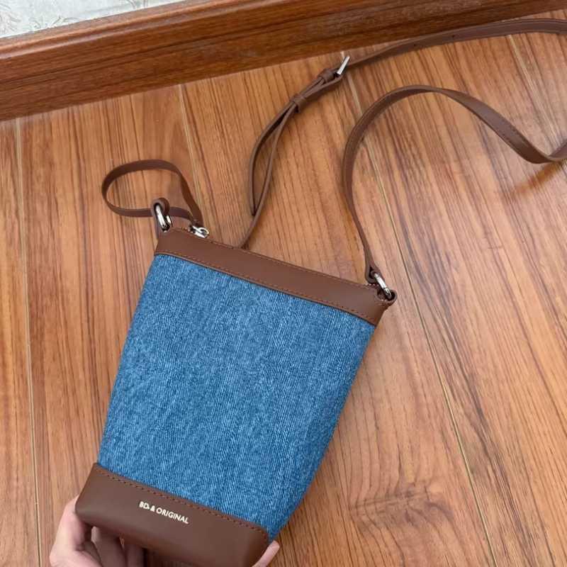 Denim blue with genuine leather bag
