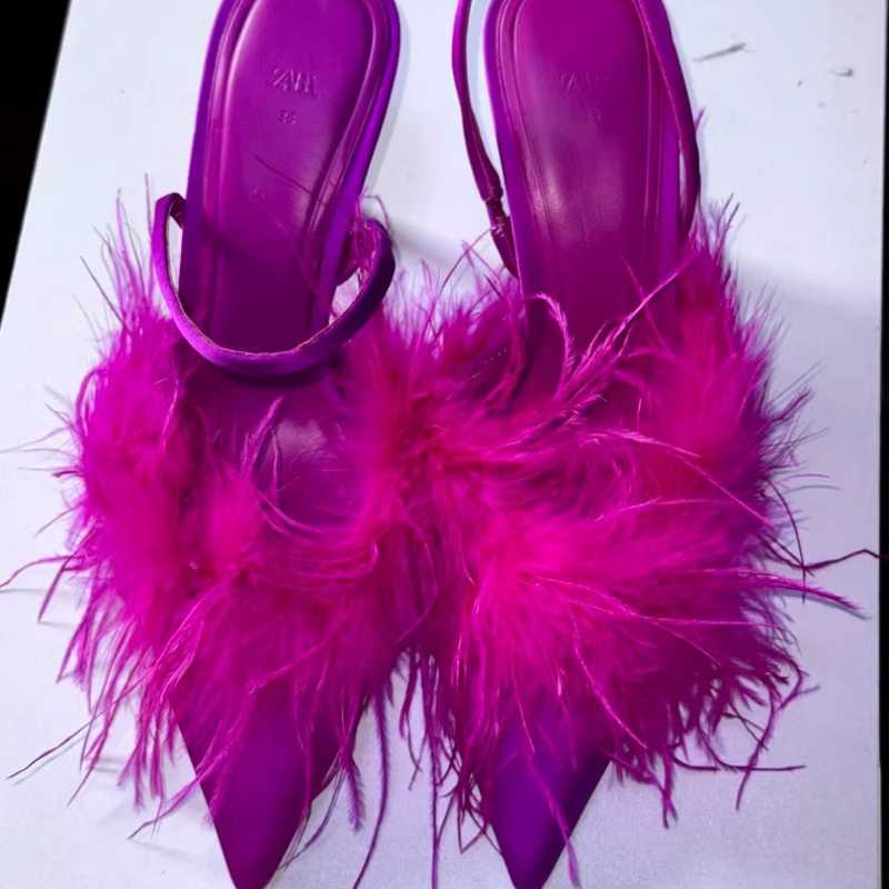 Zara's brand-new genuine high heels with silk and feathers