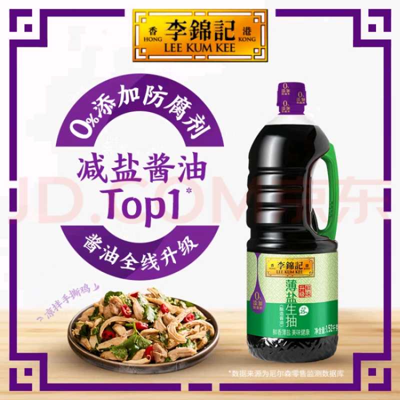 李锦记 薄盐生抽1.52kg 减盐25% 0添加防腐剂 未加碘盐 一级酿造酱油