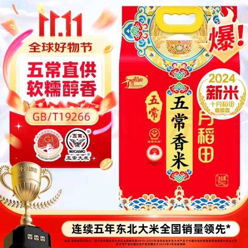 十月稻田 五常香米 五常大米 5kg(东北大米 粳米 5公斤)