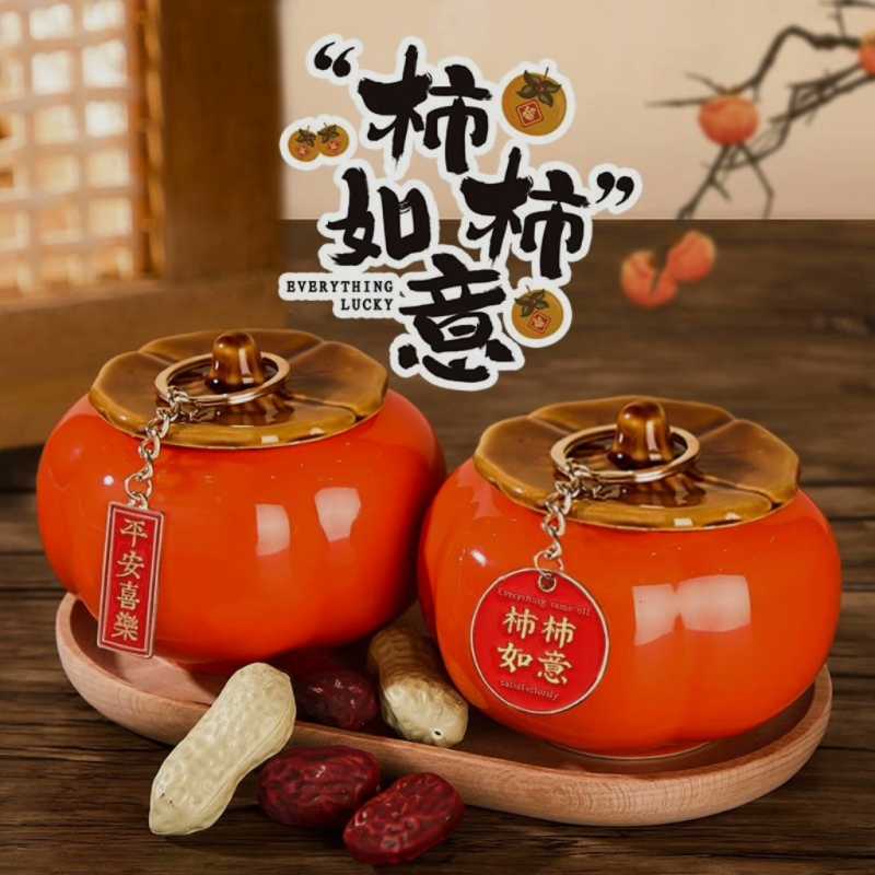 A decorative item for the living room featuring persimmons, symbolizing good fortune.