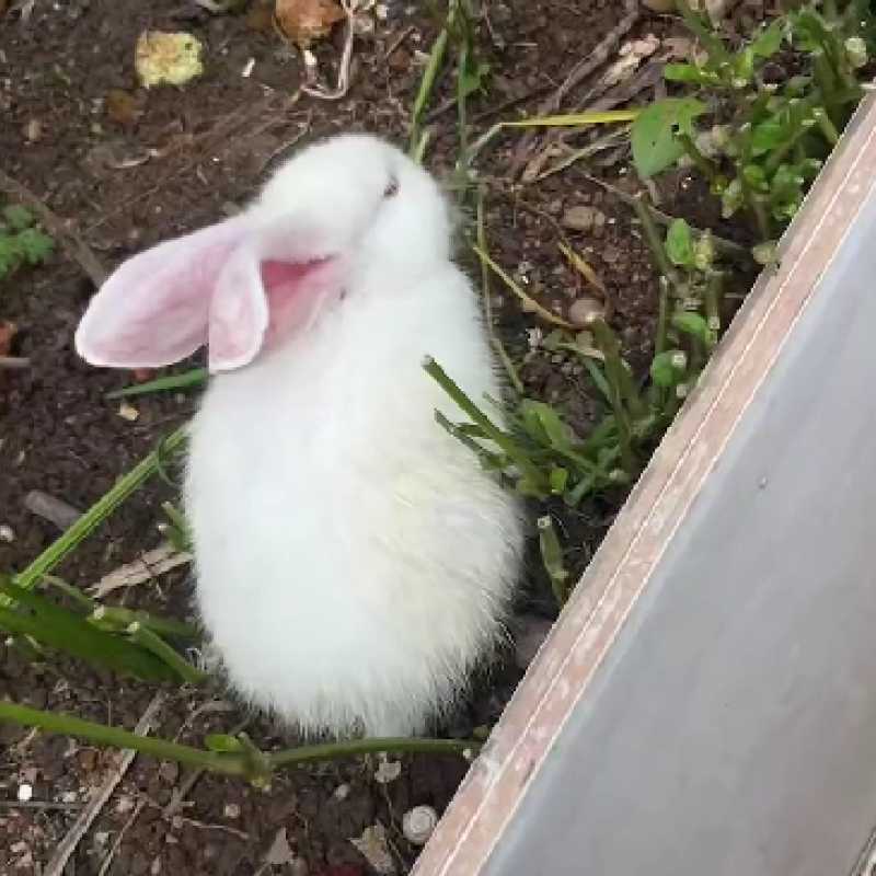 The little white rabbit raised by himself has a snow-white coat