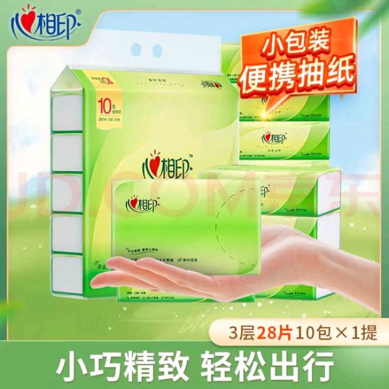 心相印手帕纸 茶语丝享 3层28张*10包 便携纸巾 可湿水餐巾纸 小包抽纸