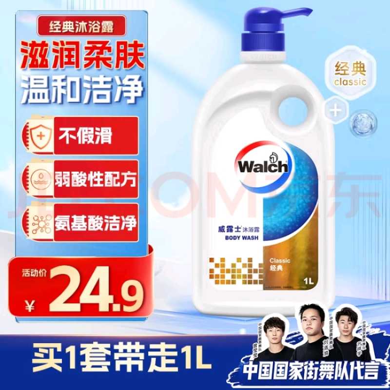 威露士(Walch)经典款沐浴露1L大瓶家庭装 保湿沐浴乳液洗澡清洁 男女士通用洗护