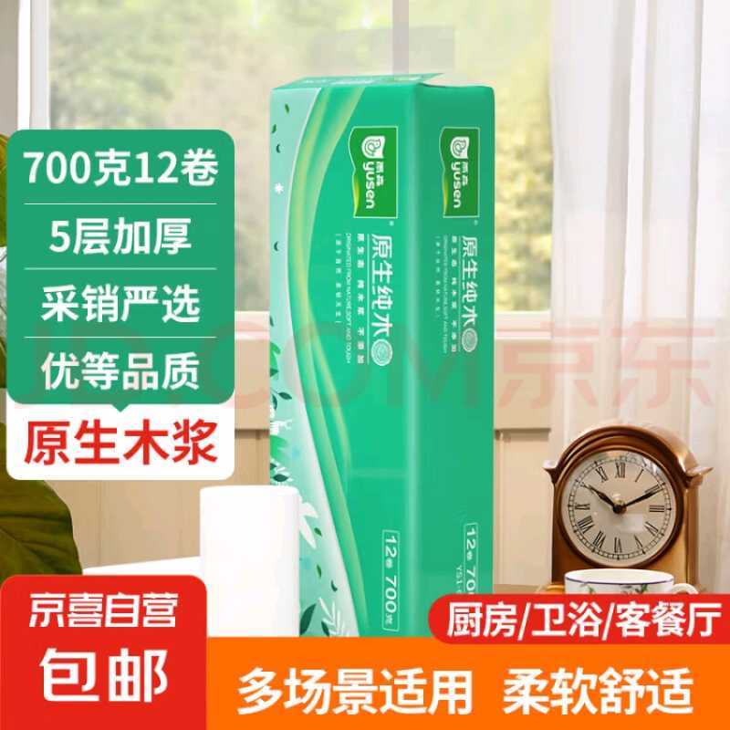 雨森原生纯木无芯卷纸卫生纸家用厕纸五层加厚干湿两用12卷/提 12卷X1提