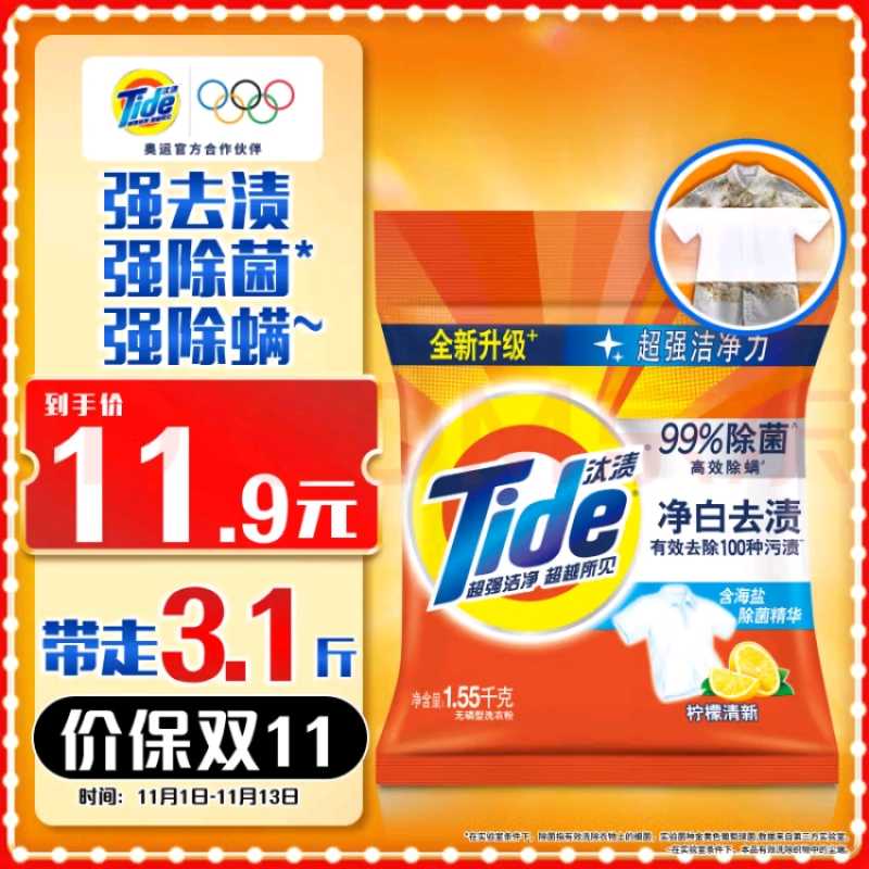 汰渍洗衣粉3.1斤净白去渍大袋批发非皂粉持久留香深层去污柠檬家庭装